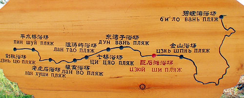 老虎石浴場(chǎng)、狼窩浴場(chǎng)、浪濤嶼浴場(chǎng)、七橋浴場(chǎng)、東灣子浴場(chǎng)、巨石灘浴場(chǎng)、金山浴場(chǎng));東海灘浴場(chǎng)(
