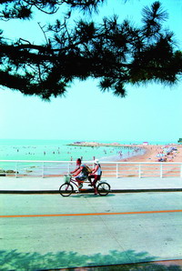 租一輛多人騎的自行車和愛人、朋友一起在美麗的海濱公路上兜風(fēng),穿梭于南、北戴河之間,滿目的碧海、金沙、俊男、美女,甚是愜意!